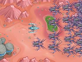 Tap and hold to move the blue ship. Can you blow up all the bad guys?